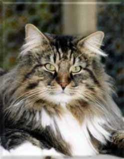 Gr.Int.Ch. Dorian av Tyssedal black tabby blotched / white geb.: 06.05.2004