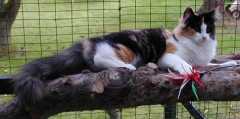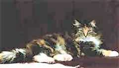 Ch. Karen Augusta Felis Jubatus, DM tortie / white