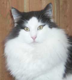 Euro.Ch. Solhuset's Sylvester black tabby blotched / white