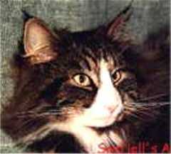 Int.Ch. Snofjell's Askian black tabby blotched / white